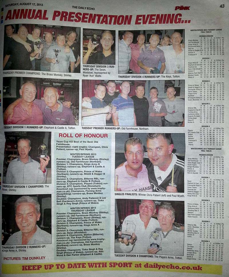 Join us to wrap up TWO seasons of winners (and losers!) with LIVE ENTERTAINMENT, competitions, 14 boot loads of trophies, 3 pool tables, grub, mystery special features and maybe a cheeky drinks offer thrown in too!